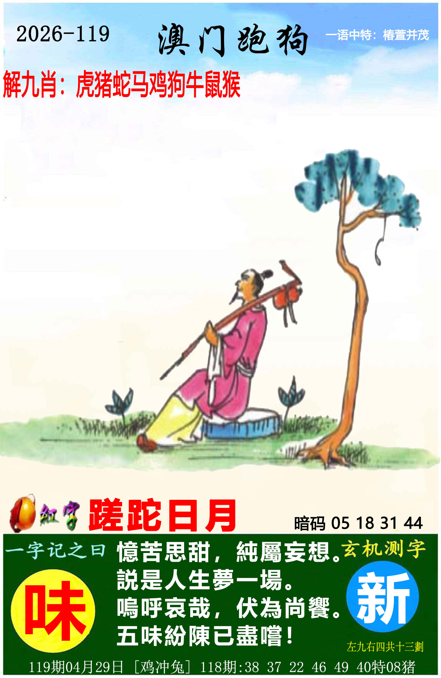 | 110期:⑨肖 | 虎龙兔牛狗鸡蛇羊猴 | 开:牛30中 |