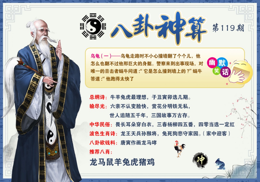 | 119期: | 鸡牛龙羊 | 开:?00 |