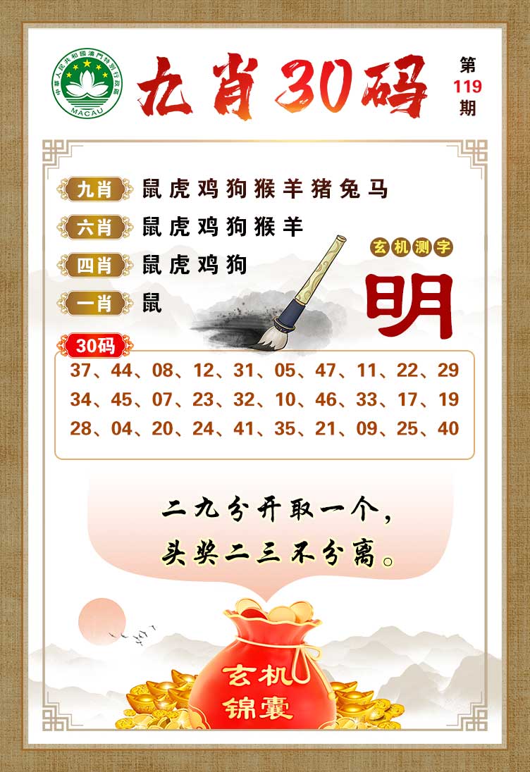 | 119期:⑨肖 | 猪马虎鼠鸡兔猴蛇狗 | 开:?00中 |