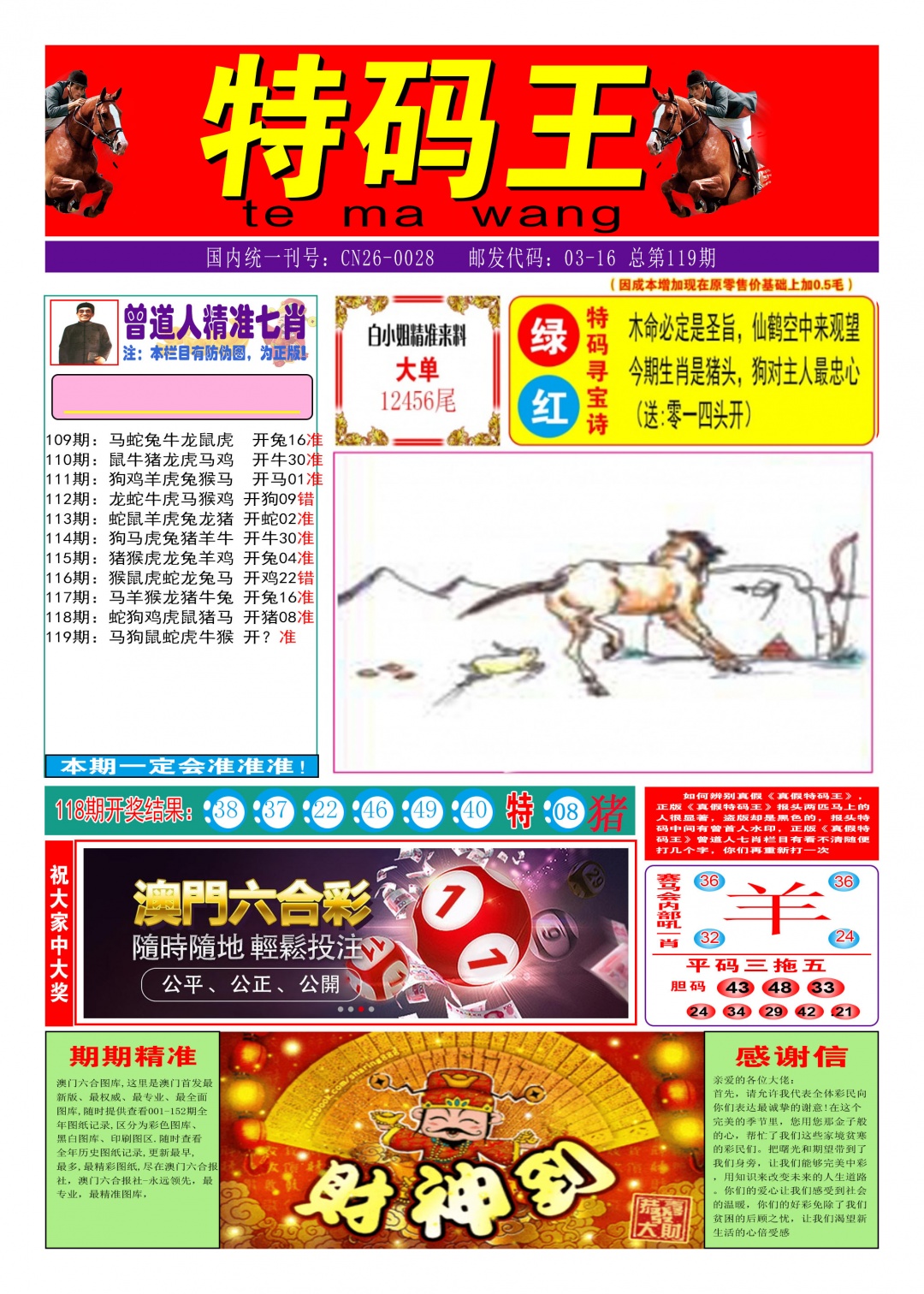 | 118期:〖平特一肖〗【马马马】開:马37中 |