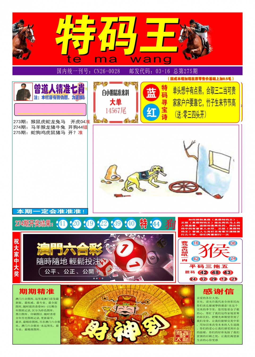 274期: | 兔蛇猴虎 | 开:狗44 |